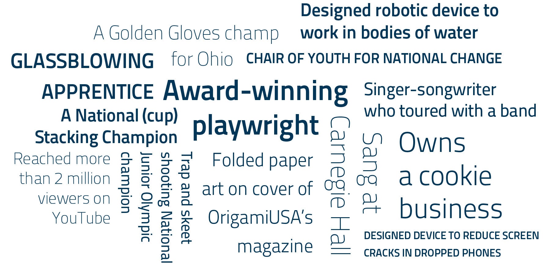 Check out titles and accomplishments that some members of the Class of 2018 earned before they arrived on campus.