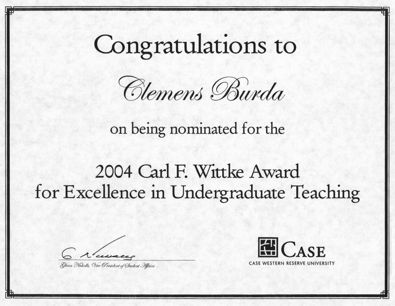 - Burda was nominated for the 2004 Carl F. Wittke award for excellence in undergraduate teaching. [jpg] - Apr, 2004