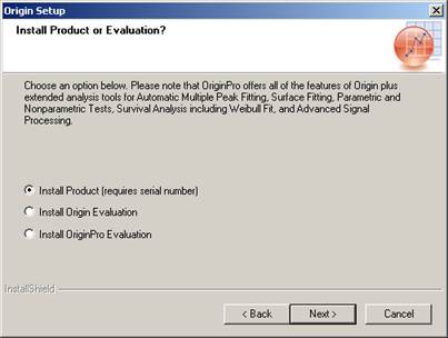 Please select “Install Product (requires serial number) and then press Next.