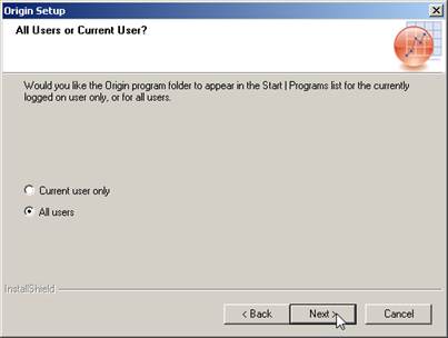 Select which users on your machine are allowed to run Origin and press Next.
