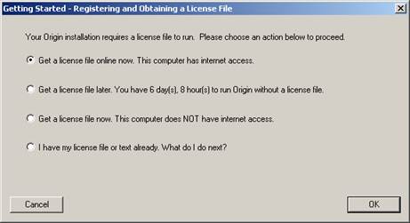 The next set of images below will be displayed the first time Origin runs. You MUST follow the product activation sequence to properly license the product. Origin will run fully functional for up to 7 days with no license. But after 7 days, you must obtain the license to run Origin.
