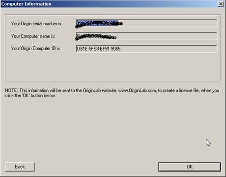 Click OK to send the information to the OriginLab website.