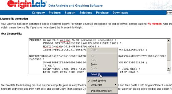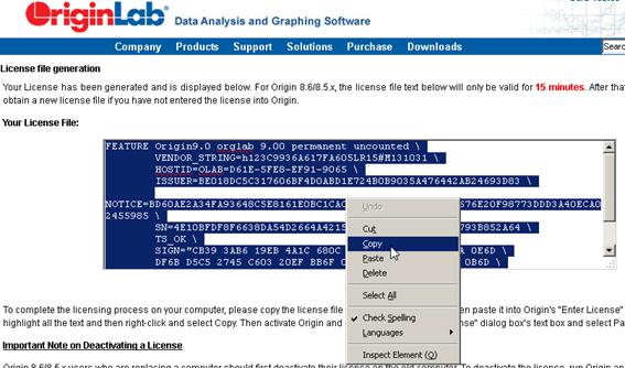 The license is generated for your computer. Copy all the license text from the web page.