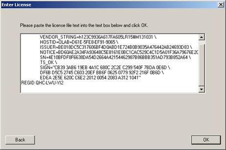 Paste the license text back into the Enter License dialog and click OK.