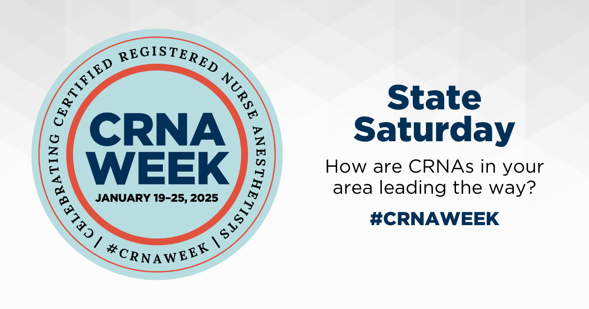 - State Saturday: "Leading the Way in Your State," how are CRNAs in your area leading the way? Download Saturday social graphic.