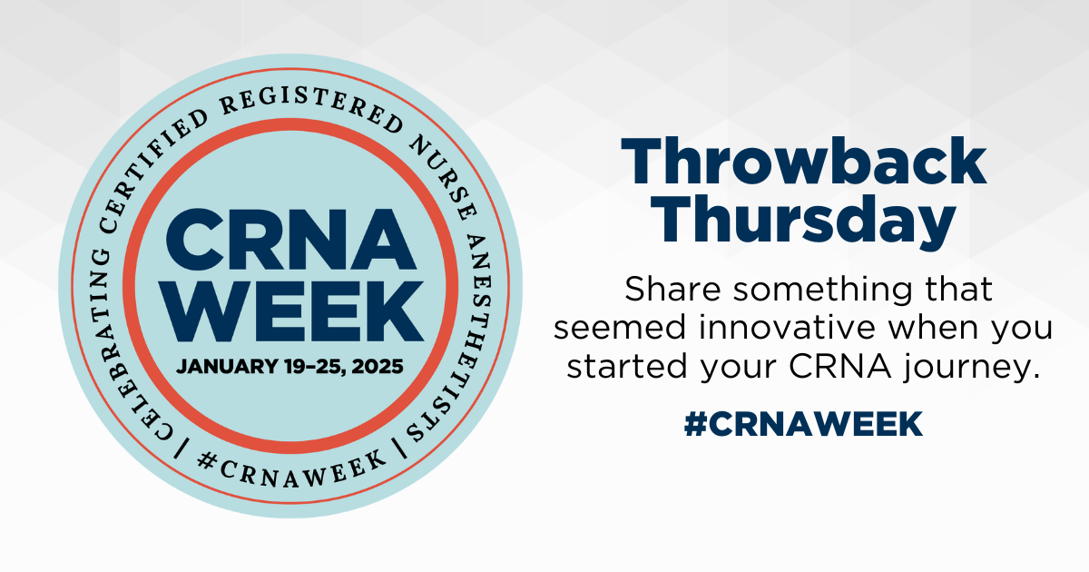 - Throwback Thursday: "Innovations Through the Years," share a photo or memory of something that was cutting-edge or innovative when you started your CRNA journey. Download Thursday social graphic.