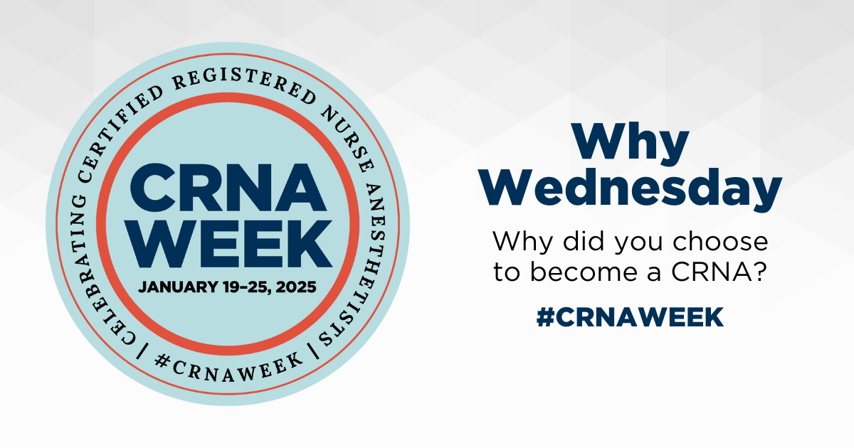 - Why Wednesday: "The 'Why' Behind Your Leadership and Care," why did you choose to become a CRNA? Download Wednesday social graphic.
